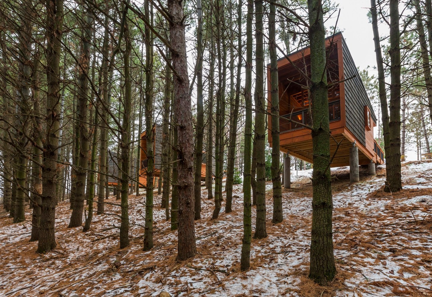 Situado na encosta de um novo parque regional dentro de Minneapolis, nos Estados Unidos, a casa de container na árvore rodeada de pinheiros pode ser considerada uma verdadeiro cabana. O projeto conta com uma ampla metragem quadrada, eletricidade, iluminação, calor e ventilação natural com vistas emolduradas para a floresta circundante, trazendo conforto moderno.