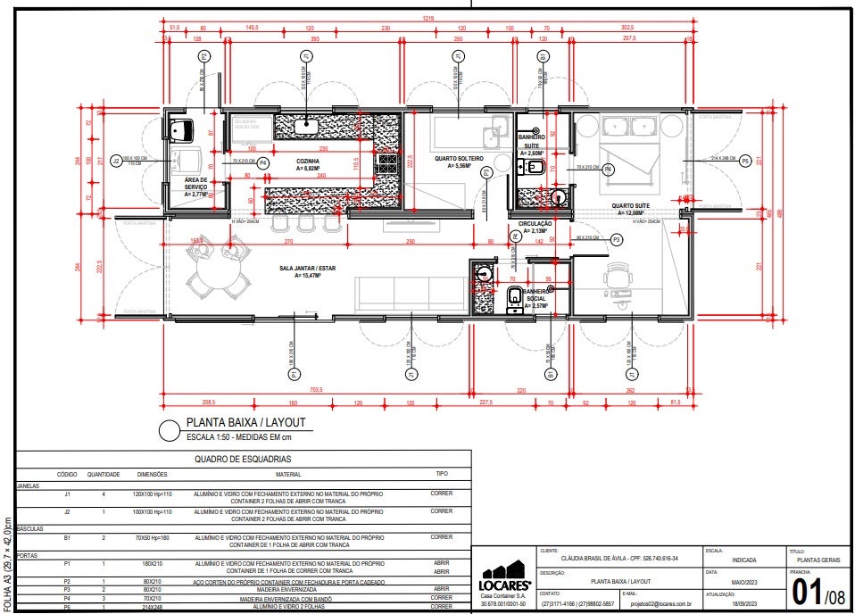 - Quarto Suíte: Suíte principal com 12,08m², proporcionando privacidade e conforto.