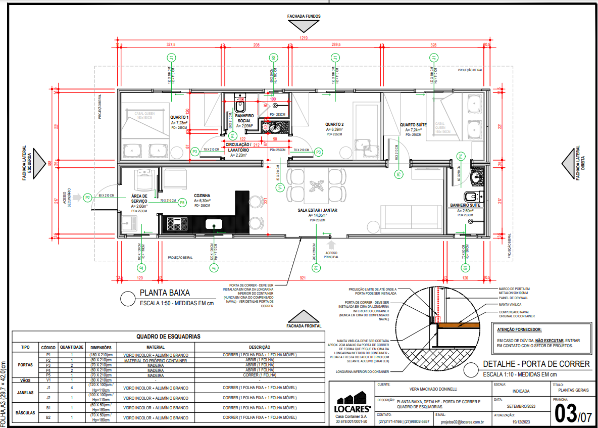 Este projeto impressionante utiliza dois containers marítimos de 40 pés, cada um com as dimensões de 12 metros de comprimento x 2,44 metros de largura x 2,57 metros de altura, resultando em uma área total de aproximadamente 60m². A Locares Casa Container entregou essa solução prática e sustentável em um curto período de tempo, ideal para quem busca modernidade, conforto e responsabilidade ambiental.