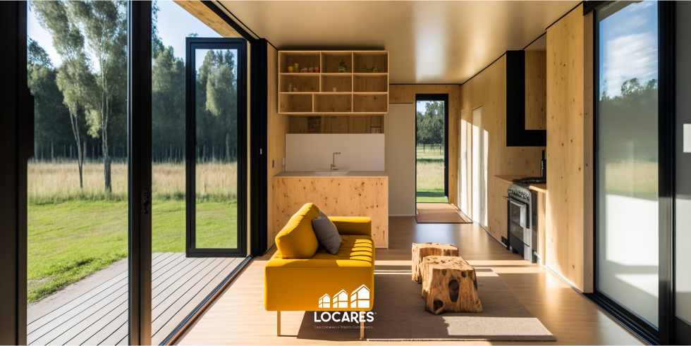 Abuse da iluminação natural: Aproveite ao máximo a luz natural em casa container. Grandes janelas, claraboias e portas de vidro ajudam a trazer luminosidade para o ambiente, criando a sensação de um espaço mais amplo e arejado. Além disso, a luz natural contribui para uma atmosfera mais agradável e economiza energia elétrica durante o dia.