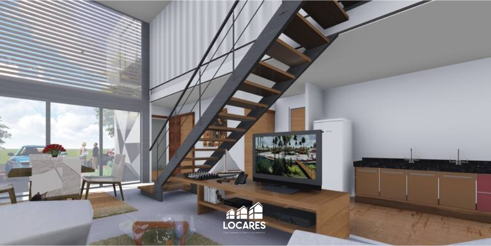 Pense verticalmente: Aproveite o espaço vertical disponível nas paredes da sua casa container. Instale prateleiras altas, ganchos e suportes para pendurar objetos, liberando o espaço no chão. Além disso, você pode utilizar mezaninos ou áreas elevadas para criar ambientes adicionais, como um escritório, um espaço de leitura ou até mesmo um quarto extra.