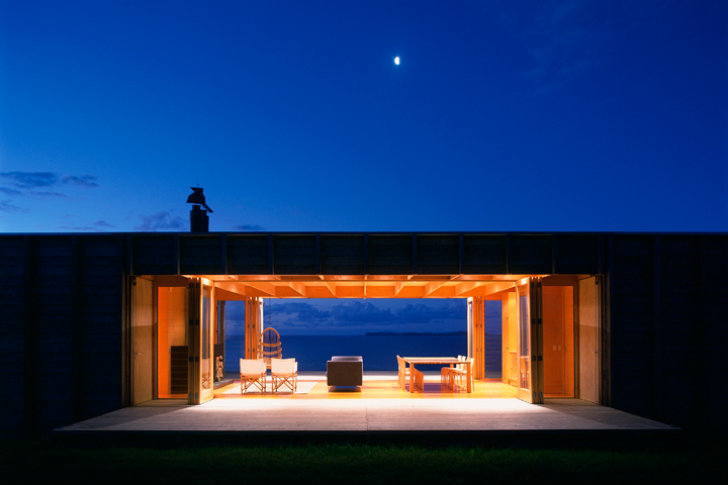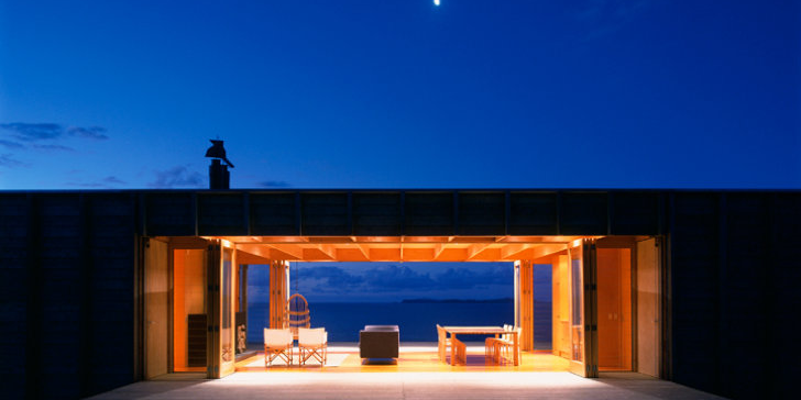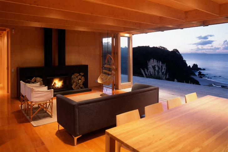 Construído a partir de madeira natural, a casa container na praia foi projetada como um simples recipiente retangular, a ideia do projeto em container foi representar a tradição de artesanato de madeira da Nova Zelândia, enquanto a estrutura, revestimento, forro e marcenaria foram expressados de uma forma crua e única.