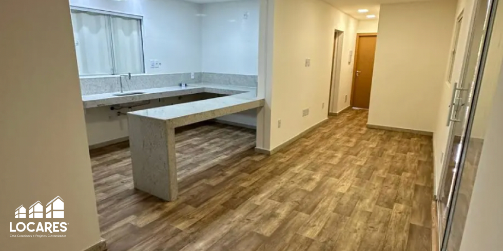 - Casa Container 40 PÉS Luxo: Container Kitnet é ideal para pessoas que buscam praticidade e economia em um único espaço. Esse ambiente oferece sala, cozinha, quarto e banheiro em apenas um cômodo, com toda a versatilidade que precisa.