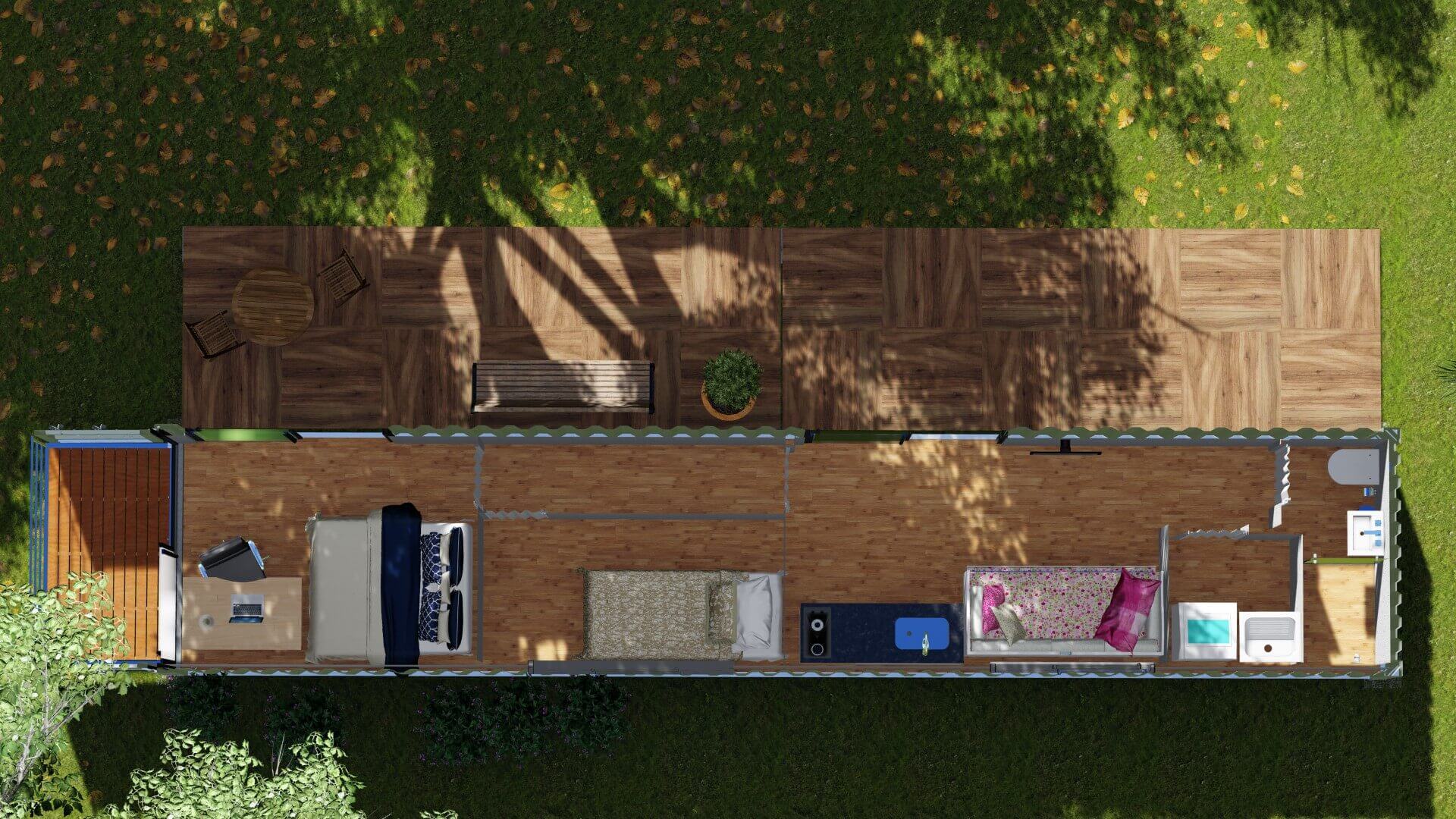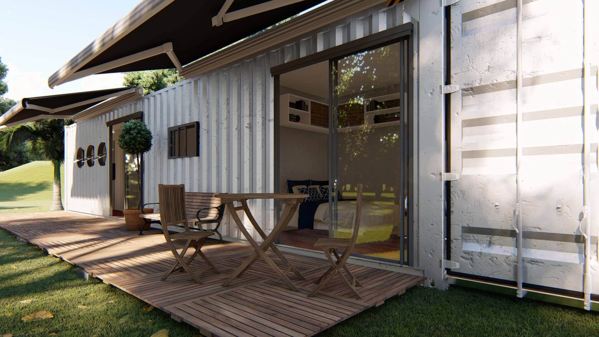 Na Locares Casa Container e Projetos Customizados você pode adaptar sua casa container do jeito que desejar, utilizando materiais elegantes e de qualidade, como deck de madeira ou até mesmo um pergolado.